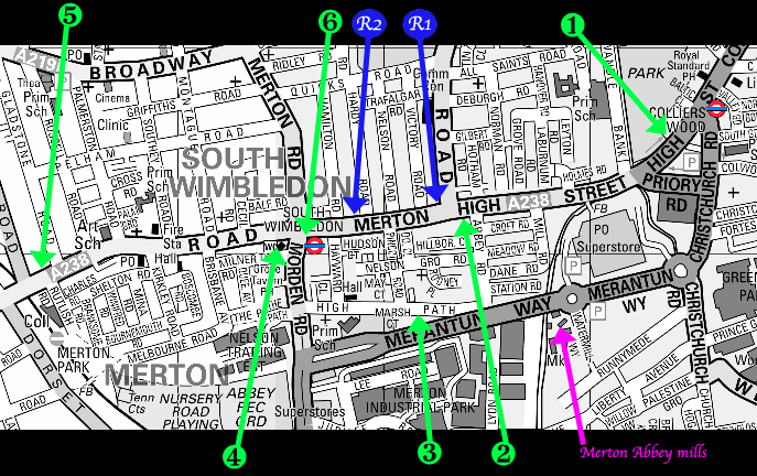 Park), Northern Line (South Wimbledon) and District Line/Mainline