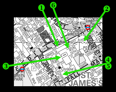 - Leave Waterstones by the back door on to Jermyn Street, turn
