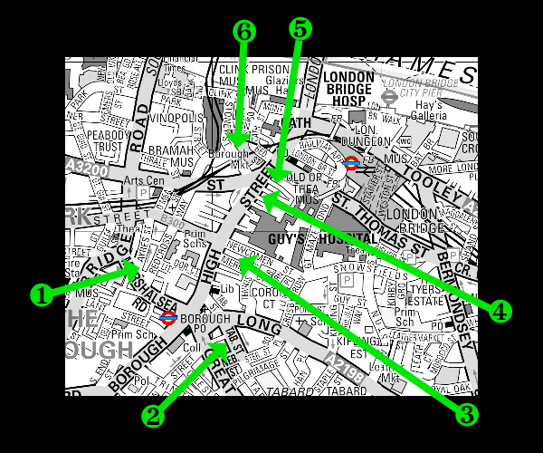- Head back out to Borough High Street, turn right and head