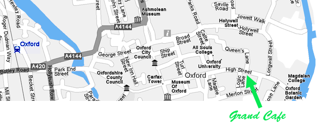 Sunday walk On the Sunday, let's walk off the excesses of the pub crawl with a gentle stroll along the Isis out to Wolvercote, a charming little village about 2 miles out of central Oxford. Wolvercote has a number of pubs around its village green and we will have a mini-crawl around these and have lunch at one of them. We won't be going to the Trout, which, being one of the most picturesque pubs for miles around, is almost impossible to get into and is usually overrun by children. The food isn't as good as it once was anyway! We'll meet at the Grand Café on the High Street from 10.30 and aim to leave at 11.15. Don't worry the walk won't be very strenuous but if you really can't face it, there are buses to Wolvercote from the centre of town. ![]() ![]()