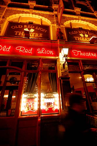*The ideal spot to sink your life savings in producing and premiering the play wot you wrote - and then drown your sorrows on the proceeds of the handful of tickets you actually managed to sell. The little theatre upstairs probably seats no more than 50 but is a lively, vibrant venue. The whole place has a theatrical, arty air but it is also a first-class local boozer. So you'll find the bottle-nosed middle managers from the big BT offices across the road necking it down at one end of the bar while actor wannabes giggle and shrill down the other - all interspersed with locals of all types enjoying the draft Pride, Broadside, Abbot, Leffe and Staropramen. The décor could come from a set-designer's template - that heavy old embossed wallpaper with generations of dull-red (for the walls) and essence of nicotine (for the ceiling) paint layers, comfortable benches running round, a scattering of tables and chairs and plenty of space for those who prefer to stand and bray at one another. Our fear is one day they'll probably gentrify this place - and the world will be poorer for it. |