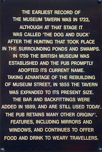 From the tube, go along New Oxford Street with Centrepoint tower on the right. Note the Bloomsbury Tavern on the right as you veer left at Bloomsbury Way, then turn left on Museum Street. The Museum Tavern is on the right just before the British Museum. Can't find it? Just ask any tourist for the way to the British Museum.