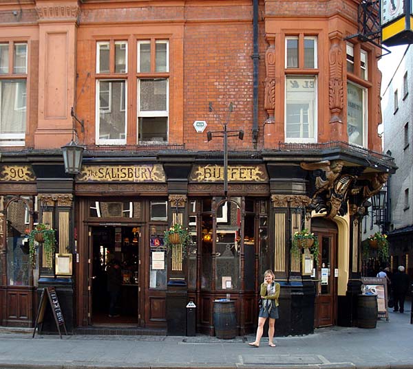 The pub crawl continues downhill as Monmouth Street joins Upper St. Martin's Lane which becomes St. Martin's Lane. At the intersection with St. Martin's Court (could we be close to St. Martin's now?), you'll find The Salisbury on the right. |